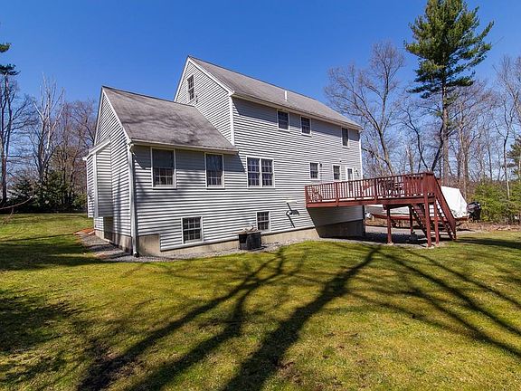 Beautifully maintained COLONIAL located on end of CUL DE SAC with acre lot . Front to back master bedroom with walk in closet and full bath. Additional 2 bedrooms with double closets. Open and spacious first floor with living room and large dining room with hardwood floors and kitchen/ eating area with CT floor. Mudroom with laundry area, half bath and access to deck overlooking a large, wooded and private landscaped yard. Front to back family room offers a gas fireplace with a mantle and spacious living. Unfinished lower level offers lots of expansion possibilities. GAS HEAT, Efficient RINNAI Hot water heater, CENTRAL A/C, two car garage and unfinished walk up 3rd floor. This home is ready to move into and start enjoying the summer! Easy access to highways, parks and conservation areas.