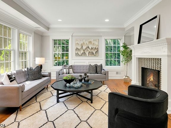Experience luxury and functionality in this stunning, newer construction home in Summit's top-rated Lincoln-Hubbard school district. A private drive leads to this impressive shingle and stone Colonial designed by David Rosen. A grand foyer opens to the gourmet kitchen with spacious island, luxury appliances, and custom cabinetry. A breakfast area flows seamlessly into a sunlit family room with coffered ceiling, wainscotting, and gas fireplace. Step outside onto the deck, perfect for entertaining or enjoying peaceful lofty views. The first floor also features a gracious dining room with wainscotting and an octagonal beamed ceiling, an elegant living room with a gas fireplace, a private study with custom shelving and wainscotting and built-in speakers throughout the first floor and deck. Upstairs, find four large bedrooms, the laundry room and three baths, including a hall bath, en-suite, and luxurious spa-like primary bath with shower, jetted tub and dual sinks. The primary bedroom is generously sized and has a spacious walk-in closet. The lower level, finished with Italian tile floors, offers high ceilings, a full bath, a generous rec room, ample storage, and a second laundry area. Outside, extensive landscaping and hardscaping was completed by the current owners. An oversized three-car garage completes this fine home. Set in a sought-after location with top-tier schools, this home combines timeless elegance, modern amenities and privacy, an opportunity not to be missed.