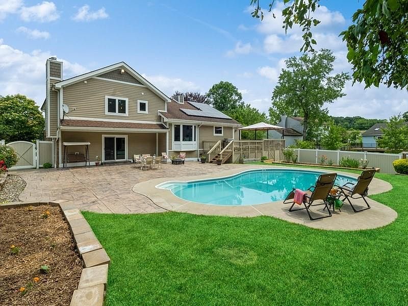 Entertainer's Dream Home features a resort backyard with heated saltwater kidney IGP & spectacular outdoor gardens, perfect for entertaining guests in style. The stunning entry of this majestic brick beauty welcomes you into a showplace worthy of Beautiful Homes Magazine w sun-filled rooms w/beautiful hand-scraped hardwood floors & stunning black walnut shelving. Host incredible meals in your Chef's kitchen w walk-in pantry, sub-zero fridg, dbl ovens, breakfast rm w huge sitting bay window, or relax in your sunken FR w FP & doors to expansive stamped concrete patio & pool. Lower level offers a huge rec room, home theatre, plus in-law or guest suite w fbath. Primary ensuite is truly a spa experience w custom shower, soaking tub & private dressing rm. Full yard irrigation system, whole house security, solar backup. Walking distance to Spackenkill schools & premier location close to Metro-North, commuter routes, and all amenities. Vacation at home everyday & love where you live! Additional Information: Amenities:Dressing Area,Guest Quarters,Soaking Tub,Storage,ParkingFeatures:2 Car Attached,