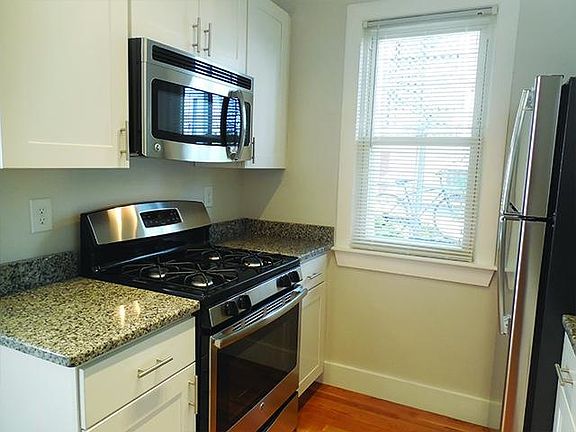 Newly renovated 3 bedroom/1 bathroom on 2nd floor of 3 family house in Winter Hill. The unit features gleaming hardwood floors, new light fixtures, freshly painted rooms, amazing eat in kitchen with stainless steel appliances including dishwasher, garbage disposal, microwave and granite countertops. Kitchen is open to the living room and offers great natural light. Good sized bedrooms. Tenants pay utilities, including water and sewer which is sub-metered. Laundry onsite. Off street parking is not included but may be available for rent. No dogs, cats are ok for additional $25/month. Available Now. $600 for broker fee.
