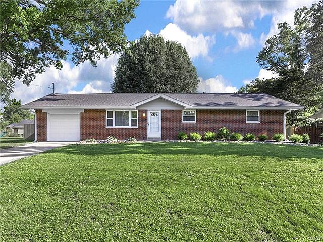 FULL BRICK RANCH on LARGE LOT IN CONVENIENT COLLINSVILLE LOCATION! Spacious kitchen with open dining area overlooks the large (100x130) FENCED BACK YARD! Back Yard Patio and Firepit - and it's nicely landscaped! HARDWOOD FLOORS in Living Room and Master Bedroom - Living Room features a brick accept wall. Basement is partially finished to include a family room (Bar Stays) and a recreation room. Lots of unfinished space left for storage. One car attached garage with workbench.