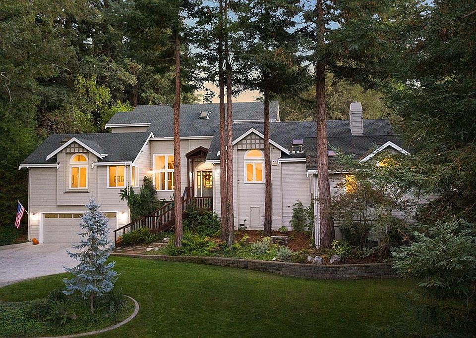 Newer Large Mountain Home with Mountain, City and Bay Views. Approx. 6.3 Hilltop acres of Redwoods and Oak trees. Separate 2 car garage with extra storage and large wine cellar. RV parking. Best Bay Area Commute location in Scotts Valley.