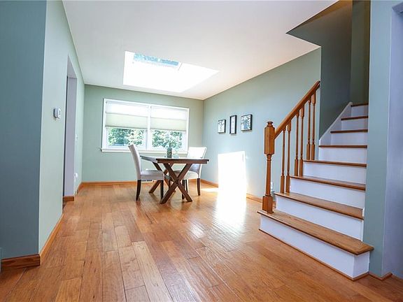 Desirable location! This Sprawling split level home with 4 bedrooms and 2 full baths shines throughout, with bright windows that show the gleaming hardwoods and neutral palette and updated color choices! The spacious eat in kitchen is equipped with appliances ready for a chef, with plenty of prep space and storage. Serve a holiday or family meal in the skylight lit dining room. Enjoy the warm and comfortable living room with an inset, wood burning fireplace. More space is offered on the 2nd floor with 3 Large bedrooms and a full bath, the 4th bedroom is in the lower level partnered with an additional full bath. Also on the lower level is an office or play area and your laundry room. Walk out the sliding glass doors to the ample deck to the lush and green private backyard ! A Must see, 8 Toni Terrace will not disappoint! Approximate age: Roof 2003, All new windows in 2005, furnace 2010, kitchen 2016, Central Air in 2018 & exterior doors updated.