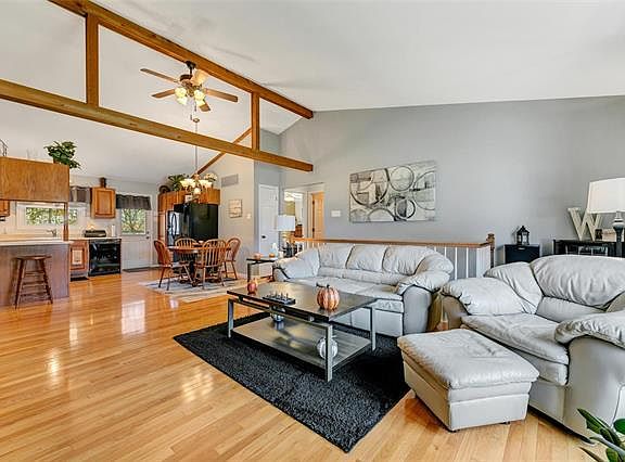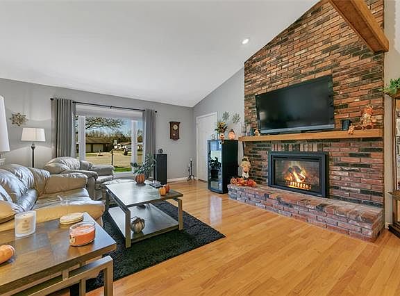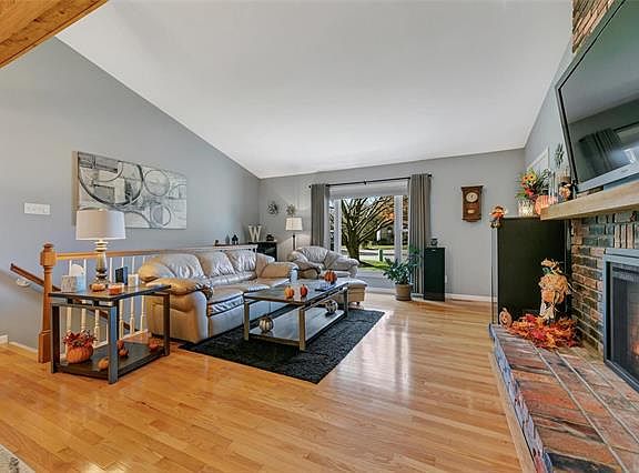 Impeccably clean & beautifully maintained! This home welcomes new owners with style, functionality & a spacious open floor plan. Located on a cul-de-sac & nestled on nearly an acre of land! Enter into your great room featuring vaulted ceilings with exposed beam, large picture window, pristine hardwood floors & a stately Heat & Glow fireplace. (Just in time for cold winter nights!) Your charming kitchen includes a breakfast bar, built-in cooktop, great cabinet space & access to your brand new deck overlooking a stunning, fully fenced backyard! Rest easy in your exceptionally sized master bedroom featuring updated full bath, double closets, newer carpet & crown molding. Enjoy extra living space in your finished walk-out basement, including a third sleeping room or home office, third full bath & cozy living room with another masonry fireplace! Impressive amount of storage & parking space in the oversized 2-car garage! New windows 2019/HVAC 2015. One-year home warranty courtesy of sellers!