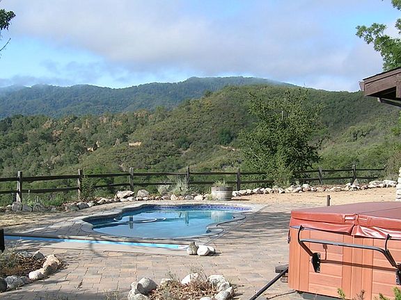 Beautiful 15 acres surround this immaculate, updated two story ranch type home in Carmel Valley. Huge stone fireplace, granite gourmet kitchen and newly remodeled baths, tile radiant heat down stairs. French doors and decks off all upstairs bedrooms. Three new mini barns for hobbies or storage along with tack and hay barns at the corral area. Covered chicken coop/run and raised garden beds. A must see location with panoramic views of the Santa Lucia mountains.