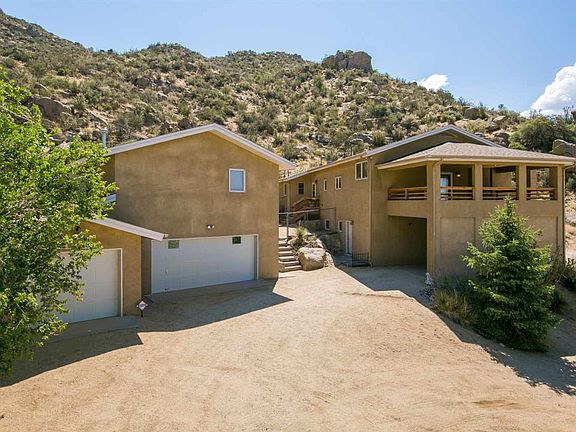 Private mountain retreat in the village of Carnuel! This custom built home is a car collector or hobbyist's DREAM HOME just 5 minutes or less from Tramway, miles away from city bustle. Thoughtfully designed with quality finishes including 2x6 construction, trombe wall in living room calculated for winter solar gain & perfect for summer plants. Custom height cabinetry in the kitchen & upper bathrooms, spacious Owners suite w/fireplace & private retreat/nursery, exercise room or sitting area. Expansive deck that wraps around w/the Best View in Town! There's a game room/theater & bathroom, heated/cooled, nicely equipped 4 car garage w/heavy duty floor trusses for heavy equipment or upper level apartment! Take a hike or sit back on the deck, relax & watch the wildlife, sunsets & starlit skies!