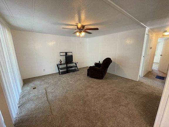 Complete remodel in the 55+ Community of Carriage Cove. Remodeled kitchen with new appliances, brand new carpet throughout. Completely updated interior, paint. Screened-in front porch - 20'x10' Newer A/C unit blows hard and cold! Metal roof, lasts forever. Lot rent is only $731