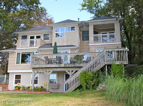 IMMACULATE WATERFRONT SHARK RIVER 5BR/2.5 BA HOME WITH CAPTIVATING VIEWS. SPACIOUS 24' EIK W/CENTER ISLAND & FORMAL DR BOTH ACCESSING REAR DECK. LARGE LR W/ PICTURE WINDOW OFFERING EXPANSIVE WATER VIEWS. 3 1ST FLR BEDROOMS W/ HARDWOOD FLRS. MASTER SUITE & 5TH BR OR OFFICE 2ND FLR BOTH W/ FRENCH DOORS & BALCONIES OVERLOOKING THE WATER. 26' FAMILY ROOM OPENS TO COVERED PATIO & PRIVATE FENCED YARD EXTENDING TO RIVER'S EDGE. OUTDOOR CEDAR SHOWER. 2 CAR GARAGE. COMFORTABLE 3-STORY LIVING IN A TRANQUIL SETTING.