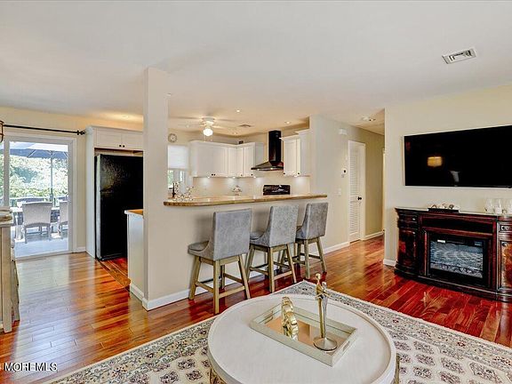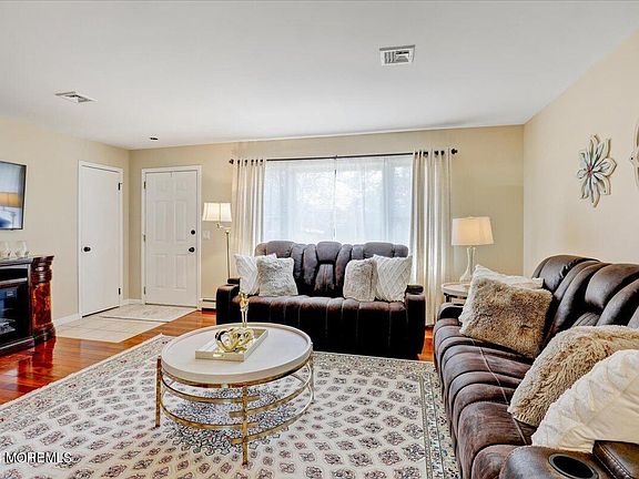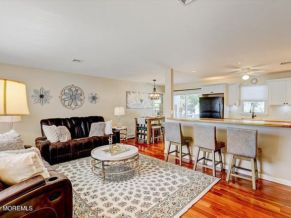 Step into this beautifully remodeled ranch-style gem in the highly sought-after Pebble Beach section of Barnegat! This stunning 3-bedroom, 2-bathroom home offers a 1-car garage and driveway. The backyard is an entertainer's paradise, featuring a spacious Trex and vinyl deck, a patio with a storm shell television, a cozy firepit, a shed, and a tranquil creek ensuring no homes behind the property for added privacy. The recently remodeled kitchen is a showstopper, boasting butcher block countertops, a 5-burner stove, a Bosch dishwasher, elegant, tiled floors, and ample cabinets. The inviting breakfast bar comfortably seats four, perfect for casual dining. Gleaming real hardwood floors flow throughout the home, and the bathrooms are tastefully updated with new vanities. The master suite is a true retreat, with hardwood floors, two closets, and an en-suite bathroom featuring a sleek stall shower. The two additional bedrooms are generously sized with ample closet space, a full-size laundry area with plenty of cabinets, a deep utility sink and washer/dryer. With new stamped concrete front entryway this home is ready for you to just unpack and move in everything has been done to perfection! Don't miss your chance to own this immaculate home where every detail has been thoughtfully considered.