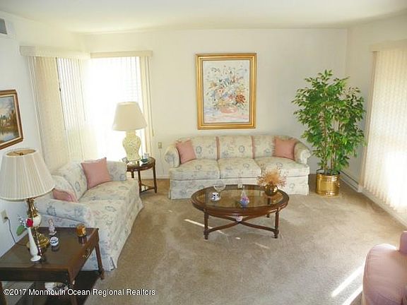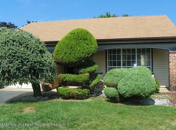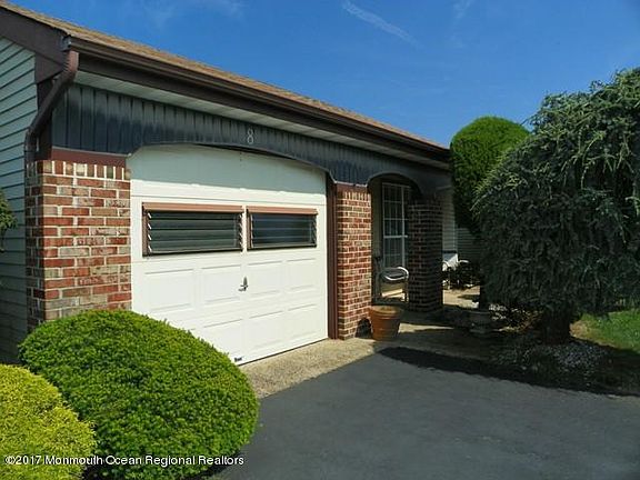Very well maintained Westport model in adult community -over 1500 sq.ft. Newer central air and laminate flooring in foyer hallway. Master bedroom 15x15 with walk in closet and sink with vanity. Two full baths, one with tub, the other with stall shower. Formal Dining room and both a living room and a large den with sliders to expansive rear private treed yard. Kitchen has breakfast area and side door leading to covered patio, great for bar-b-ques and entertaining. Front of home has an open porch and lush landscaping surrounds the property.Lots of sunlight flows into home. Very active clubhouse, lots of activities, trips, pool. Come and enjoy meeting new friends and a great way to live. Some areas have gas being added to streets-check with utility company. Sold as is.