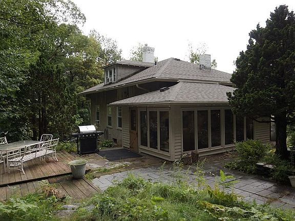 This Bungalow is the last house on a dead end street. Good size grassy side yard and Nice Stone Walls, Steps and Patio's surrounded by Gardens and a Large Deck for outside enjoyment are all very private! Most of the home has Hardwood Floors. The Main level has Tall Ceilings and offers a Kitchen, Living Room, 2 Bedrooms and Full Renovated Bath. There is a Large Sun Room across the back of the house with Hardwood Floors and a mini-split for heating and cooling. Upstairs there is a 3rd bedroom and bath that need major renovation. The house needs a lot of cosmetics and is a great opportunity for someone to build some sweat equity! Roof is 8 years old. Natural Gas Boiler 1996, Natural Gas Hot Water Heater approx 2010. 100 amp Electrical Service w/Circuit Breakers. Windows have been replaced during various years. Property will not qualify for FHA or VA financing.