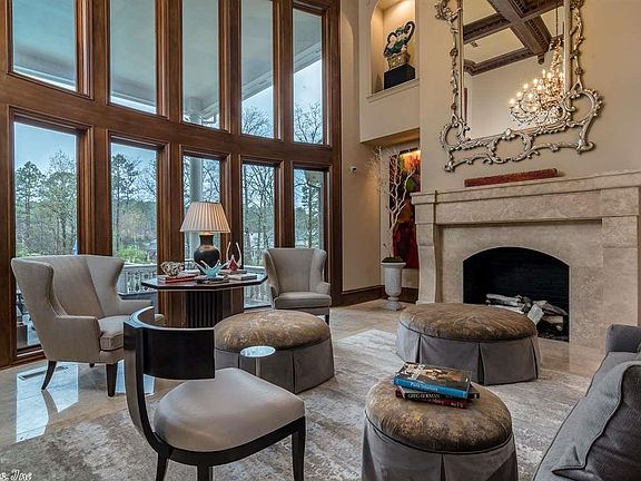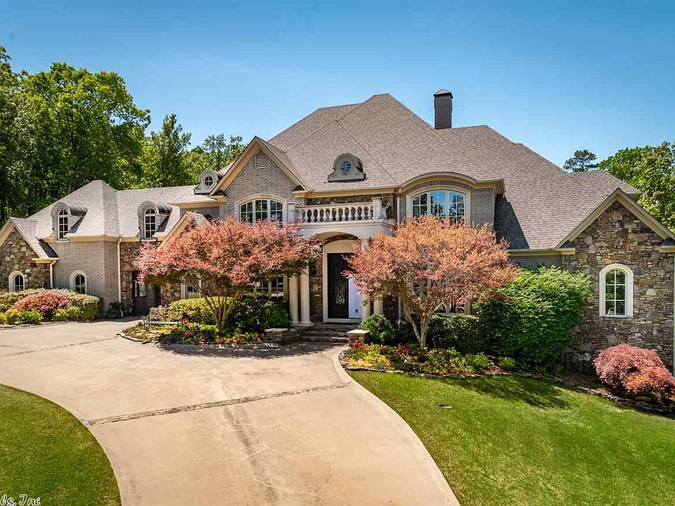 This home was the 2018 Symphony Designer Home. The Estate features a brick & Ark. stone exterior and is sited on over an acre, backing up to the neighborhood water feature.The main residence features a grand entrance with one of two staircases, formal living and dining rooms, gourmet kitchen, informal dining, family room, wood paneled study and owners suite. The upper level features three additional living areas and three bedroom suites. Full guest or staff suite is adjacent to the porta-cochere.