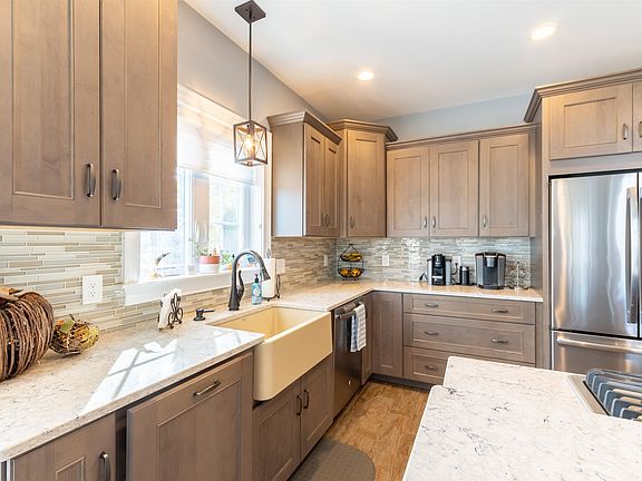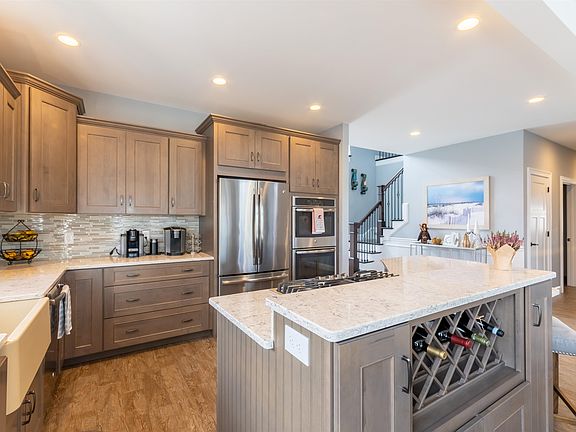 Welcome to this custom-built home, nestled in a serene lot, offering a peaceful retreat adjacent to a conservation area with walking trails. The meticulously designed home boasts luxe features and thoughtful details throughout. As you enter you are greeted by a spacious foyer. From there, the main living area unfolds, showcasing a seamless flow ideal for both entertaining and everyday living. The gourmet kitchen has top-of-the-line appliances, ample counter space, and a functional layout. Adjacent to the kitchen is a dining area, and this seamlessly opens to the great room. This space, with floor-to-ceiling windows, is bathed in natural light and has a lovely view of the outdoors. Head out onto the screened porch located just off the dining area for an idyllic setting where you can enjoy the tranquility of the surroundings. Convenience is key in this home, with a master bedroom thoughtfully situated on the first floor. The second floor offers additional living quarters, including two bedrooms and a full bath. A second master suite awaits, providing a haven for family or guests. The walk-out basement features a spacious family room with a bar and sitting area, perfect for hosting friends and family. A dedicated workout room allows for fitness enthusiasts to stay active in the comfort of their own home. The location is ideal with Portsmouth and the scenic features of seacoast New Hampshire within easy reach, offering an array of dining, shopping, and entertainment options.