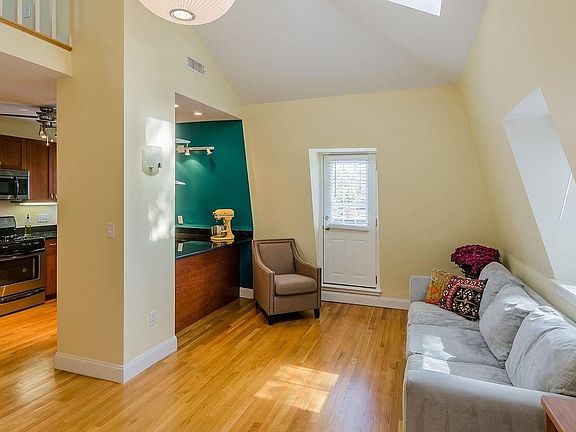 Top floor, corner unit two-bedroom, two full bath condominium in a renovated Mansard Victorian. Open and airy unit with three exposures, high ceilings, a contemporary kitchen with stainless steel appliances, granite counters, breakfast bar and hardwood floors. Spacious master bedroom with ample closet space and full bath. Large second bedroom with built-in shelving and good light. Generous loft space ideal for an office, den or overnight guests. Full-size in-unit laundry, good basement storage and assigned parking. Close to Rt. 95, the MA Pike, walking distance to the commuter rail and Moody street entertainment, shopping and restaurants.
