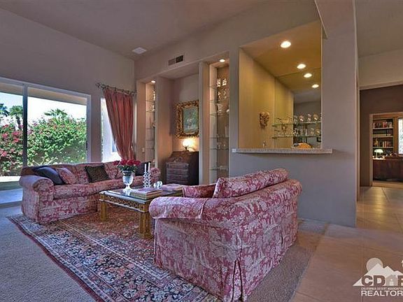 Very well-maintained newer home, close to ALL the best the desert offers! Quality built 3BR/2.5BA (PLUS separate office/den...or 4th BR?) features the style & architectural detailing usually found in homes at twice the price: high ceilings, flowing floor plan, large walled lot, sparkling SOUTH-FACING pool/patio, yard & privacy. Generously proportioned living room spills into an equally impressive kitchen/family room area, complete w/ gas fireplace. Nice-sized kitchen is well laid-out & fully appointed with everything the home chef needs to entertain like a pro. Large master suite is situated away from guest areas for added convenience & privacy, plus offers a walk-in closet, large oval soaking tub, separate shower & water closet. The guest wing features two BR's, large guest bath, office - PLUS a half-bath/powder room! Palmira is a hidden jewel, only 62 homes, gated, & close to EVERYTHING: outstanding restaurants, upscale shopping, entertainment, schools. Best of all: LOW HOA's!
