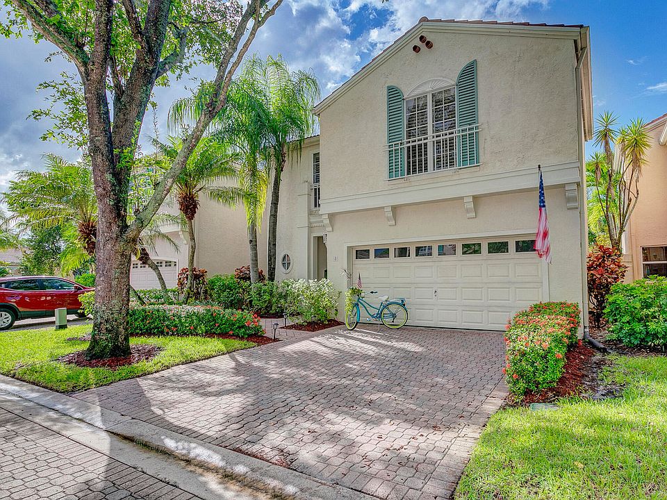 Unique opportunity for an affordable home steps from the community pool located in highly sought Villa d' Este, an adorable Tuscan themed neighborhood nestled into PGA National Resort, home of the Annual Honda Classic. Enjoy the flowing fountains and Mediterranean Piazza's while strolling or biking through the paved leafy community streets. The home features professional landscaping with an inviting rear private patio courtyard to enjoy outdoor dining/grilling and breezy evenings with friends. Newly refinished spanish tiles throughout the first floor, soaring ceiling in living room, newer kitchen appliances, on-demand hot water system, roof 2016 and HVAC June 2020. Second floor offers three bedrooms including large master with walk-in closets, two full baths, and a custom loft area. Upgrades include custom carpeting through entire second floor, roof 2016, HVAC 2020, and gas range 2018, on-demand hot water. Newer washer and dryer(gas). TV in master suite included. LR TV not included, mount remains. Home warranty is transferable to new owner(annual fee).