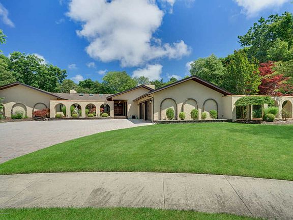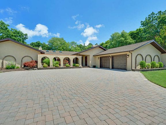 If you're looking for a private oasis, look no further. Privacy Abounds in this spacious property with almost 2 acres of beautifully landscaped property! This custom California Ranch style home with numerous interior & exterior archways is 4,186 sq. ft. & has cedar cathedral ceilings through most of home. This stunning home offers 4 bedrooms, 2 full baths, 1 half bath. Entertaining is easy and enjoyable with the large living room, with skylights and a fireplace, the game room with a built-in full bar providing access to the sprawling deck! There is also a fabulous study/den room with a built-in minibar and a fireplace. The large eat-in kitchen has a center island with built-in seating. Exterior offers a paver driveway with 8-10 car capacity, Koi Pond, 8 zone sprinkler system & plenty of extra room for gardening, or kids/pets to play! If all that wasn't enough, vacation in your backyard with the 50x25 foot heated saltwater pool! All this space & located on a quiet cul de sac! Don't miss your opportunity to own your very own oasis!