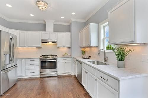 In Town. 3 Bedroom/2.1 Bath Townhouse. Open Floor Plan w/High Ceilings. 2 Story Foyer, Hardwood Floors, Gourmet Kitchen with Marble Counters, Formal Dining Room, Family Room w/ Fireplace Adjacent to Kitchen. Large Sunlit Living Room. Primary Suite with Walk-In Closet and Marble Primary Bath. Stone Terrace, Great for Entertaining or Relaxing. 2 Car Attached Heated Garage. Close to Town, Shopping, Dining, Transportation & Schools. Additional 936 square feet for garage and finished basement. Photos were taken prior to current tenant.