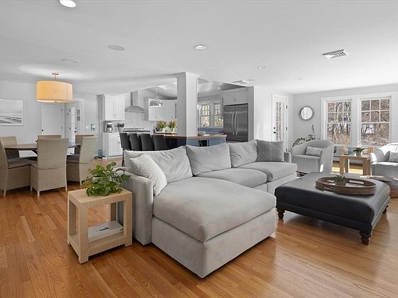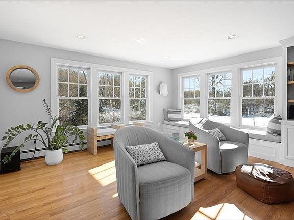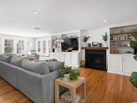 This stunning Colonial in a premier, sought-after neighborhood is a showstopper! With designer touches and major updates, it's a true standout. With 4 bedrooms and 3.5 baths, this turnkey home features an open-concept layout, starting with a cozy living room with shiplap and barn doors, perfect as an office/guest room. The expansive family room with a wood-burning fireplace and custom built-ins flows seamlessly into the chef’s kitchen with high-end stainless steel appliances, wood-topped island, and pantry. Step out from the family room and kitchen area onto a sweeping deck, ideal for entertaining or relaxing.Upstairs, the primary suite offers vaulted ceilings,WIC, and spa-like bath w/radiant heat, while three additional bedrooms (1 en suite) and addt'l bath provide ample space.The finished walk-out lower level includes a recreational area, gym and media room. Enjoy the brand-new patio, sauna overlooking level lot - perfect for a rink!Walk to Hingham Center, library & Turkey Hill