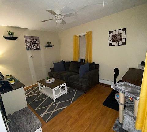 Townhome style apartment! Great community and easy access to the highway. Two bedrooms upstairs and living and kitchen on the first floor! Coin op washer and dryer in the basement and bonus storage. Rent includes trash, plow, lawn, heat, hot water, and internet! $1,425/month Background checks and References required. First and Security to move in. Appointments will not be scheduled until applications are submitted. Owner pays for Heat, Hot Water, Sewer, Lawn, Trash, Wifi. Tenant is responsible for electric Cats only