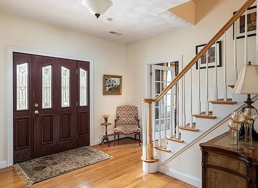 Impeccably Maintained Colonial w/ Attractive Farmers Porch on 1.5 Acre lot set back on Scenic Country Road. Fabulous Floor Plan offering over 3800 sq ft of Flexible, Living Space including Walk-Up 3rd Floor Finished Bonus Room & Finished Walk-out Lower Level Media/Game Room. Some highlights include: Cabinet Packed Cherry Kitchen w/ Center Island & Dining Area w/ French Doors opening to Huge (26'x24') Family Room w/ Cathedral Ceiling & Gas Fireplace, Large Formal Dining Room, 1st Floor Office, Flex Room on 1st Floor currently used as a Guest Bedroom. Hardwood Flooring throughout 1st & 2nd Floor, Surround Sound, Expansive Deck overlooks Nice, Level Backyard w/ Recently Renovated Barn, Inviting Patio w/ Custom Stonework & Firepit, Great Swingset. The spacious floor plan & private lot make family times & entertaining a pleasure in this inviting home. Great Commuter Location just minutes to Rt 495/MA Pike. Showings begin at Open House, Sat 3/7 from 12-2 p.m. Open Sunday 3/8 from 12-2 p.m.