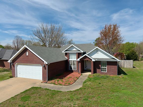 Gorgeous brick Farmington home locate just minutes from I-49 on a large corner lot. Boasting three bedrooms and two baths on a split floor plan, this home also features elevated ceilings throughout the main space which makes it feel much larger than its 1480 sq feet. The back yard more spacious than most you'll find in the area and comes with an oversized detached shed for storage and great outdoor entertaining area provided by an extended covered deck. Refrigerator conveys with the home. Home being sold AS-IS