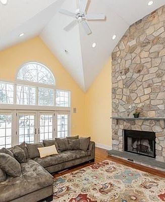 This home should be on the cover of a magazine. Picturesque Custom built home with many high end details. From the minute you enter the grand 2 story foyer with marble floors, you will be impressed. Gourmet kitchen with center island, granite counters and raised glass fireplace, 3 season sun porch overlooks private backyard of nearly an acre. Great room with two story stone fireplace and French doors leading to large deck for entertaining. Study/office with sliders to deck, living room with gas fireplace. Dual staircase is a real plus. 2nd floor features luxurious Master Bedroom suite with raised glass fireplace, sliders to roof deck, walk in closet and spacious master bathroom with Jacuzzi and tiled shower. Jack & Jill bedrooms w/ tandem full bath and dual sinks, guest bedroom with full bath. 2nd floor laundry rm. Interior Bose system in kitchen, family rm, living rm, office, dining rm, sunroom & patio. Call today for a private viewing! You will be impressed.