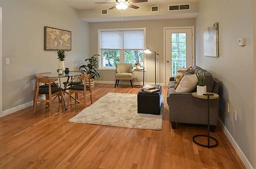 Third floor unit with elevator access. Hardwood and brand new wall to wall carpet flooring and fresh coat of paint make this ready to move in. 2 Full bathrooms, private balcony and deeded garage parking space add to the value. Close to shopping, restaurants and all that Peabody has to offer.