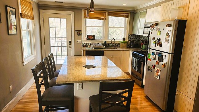 A fantastic mix of size and quality, this Fairmont Hill duplex condo is everything you need! The first floor has an updated kitchen - granite counters + big island, stainless steel appliances - with a deck off of it, an open living room, one bedroom and one full bath. The top floor of the unit is like a suite, with large bedroom space, office area, full bath, and a second deck. Central air & heat, in-unit laundry, and there's two car off-street parking included in the rent! Less than a half mile to the Commuter Rail and bus lines, less than 5 miles to all the shopping and dining options on Centre Street in West Roxbury, and a quick drive to Legacy Place. First, security, and a broker fee of one month's rent are due at lease signing. The condo is professionally managed, so tenants can pay rent on-line and have emergency maintenance coverage. Available for a July 1st move-in. No smokers or undergraduate students, please. Applicants with a cat will be considered.