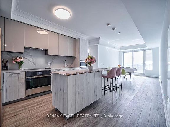 Introducing a stunning Times Group condominium, perfectly positioned in the lively and convenient heart of Markham. This beautifully crafted 3-bedroom, 3+1-bath residence offers a thoughtful layout, highlighted by ensuite bathrooms in two bedrooms, soaring 9ft ceilings, and sleek modern laminate flooring that enhances the natural light throughout the space. The chef-inspired kitchen is a true centrepiece, featuring premium built-in appliances, elegant granite countertops, and a spacious island that doubles as the perfect breakfast spot. Step outside to the impressive southeast-facing balcony, where you can soak in gentle morning light or unwind with serene evening views. With 1 parking spots, 1 locker, and a host of advanced building features-including an intelligent smart system, automated parcel pickup, and 24/7 security-this home delivers both luxury and peace of mind. Located just moments from supermarkets, Cineplex, top-tier restaurants, GO Stations, Viva transit, and Highways 404 & 407, this condo offers unparalleled convenience in a vibrant, well-connected neighbourhood. Don't miss your chance to experience elevated, sophisticated living at its finest!