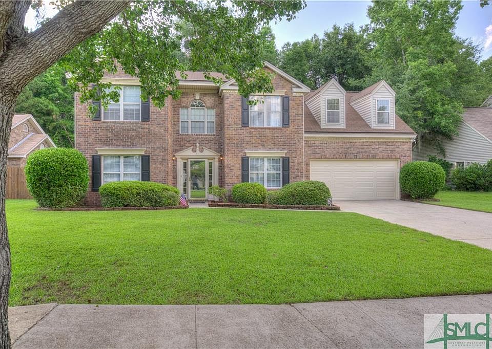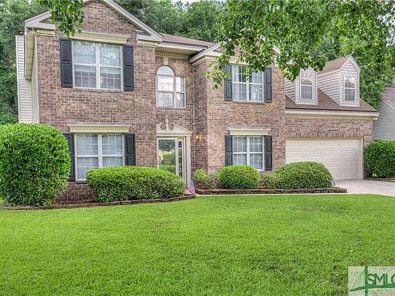 Stunning brick Georgetown beauty on cul-de-sac in Lions Gate Community! NO FLOOD ZONE! This well-maintained home boasts 5 large bedroom + downstairs office with 2.5 bathrooms! So much room for the growing family in this home! Minutes from shopping/dining and only 10 minutes to Hunter Army Airfield! Large brick fireplace in the living area, separate formal dining room, office and large windows with tons of natural light! This home has a newer roof (2016) and complete with new stainless steel appliance package in the kitchen. Large kitchen includes breakfast room, perfect for those weekend mornings! Home backs up to the woods and the property line goes beyond the fenced in yard into the woods. This home is priced to sell and will not last! Make your appointment today!