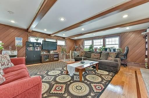 You could be the lucky new owner of this beautiful colonial in prime Roslindale location, just 1 mile from Roslindale Village. First floor of this home features recently updated kitchen w/granite counters, stainless steel appliances, new kitchen cabinets, ceramic tile floor and wine chiller. Real solid carved wood doors and hardwood floors through-out. Spacious living room and dining room are perfect for family gatherings. Unique addition on the back, currently used as a family room with brick fireplace, beam ceilings and spiral staircase leads down to another large finished heated room, currently used as a game room, but could be a 4th bedroom. The addition has in-law potential or teen suite. 1/2 bath on the 1st floor. 2nd floor has 3 bedrooms & 1 full bath. Walk-up finished attic used as study or bedroom. All windows have been replaced. Furnace is 6yrs old, water tank is 1yr old, 200 Amp electrical service. 2 car driveway.