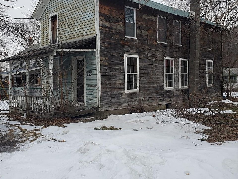 Small village lot with town water and sewer,New metal roof and windows .If you need a project for the winter this is it for the money its a start to a new home !! Home is a shell,It has a crawl space under it and one section has a 6ft basement . Some sheetrock left to take down .Home needs insulation,wiring new sheet rock, kitchen etc .. sold as is !
