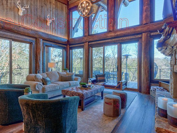 Pre-Construction...Massive, Modern Log Marvel with Rustic Ambiance is perched above rushing Fightingtown Creek with simply the best views around & fabulous frontage, literally...this 4 bedroom/3.5 bath spread features clean contemporary lines & single pitch roofs, stunning finishes in the sprawling & open layout, glass galore, larger than life living area with soaring ceilings & lavish stone fireplace, both masters boast ensuite baths with large closets, his & hers vanities, "spa feel" showers, free standing tub, back lit mirrors & more, variety of wood finishes & textures, "treehouse feel" staircase, custom cabinetry & high end appliances & fixtures throughout, full finished terrace level features guest quarters, entertainment center, wet bar, rec room & bunk room, exquisite exterior sits above canopy of towering hardwoods with seclusion & wide open spaces...two levels of covered porches and decks to take in view, all glass front brings the outdoors in, multiple fireplaces, party porch, lush landscaping to waters edge...quaint creek front community with gated entry & generous parking area with carport, unique & quaint touches adorn this one of a kind property! Master trout stream living at it's finest!
