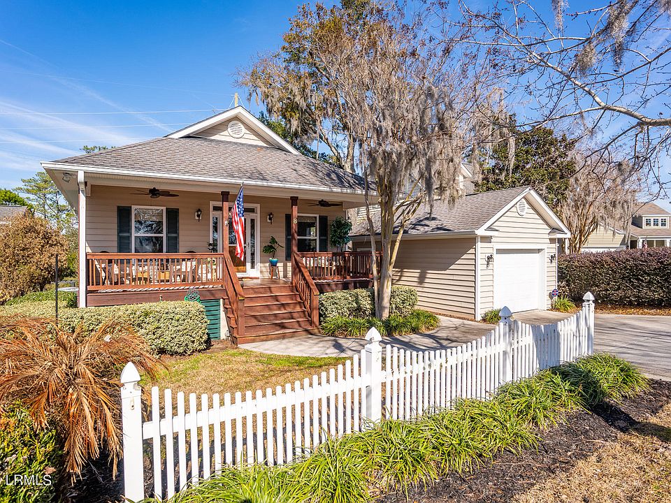 Welcome home to 8 White Pond! Spacious and open floor plan offers comfortable living, with the modern kitchen open to the great room for easy entertaining. The owner's suite has a bay window, plus a walk-in closet, and a large en-suite bath with double sinks, a soaking garden tub, and a separate shower. The split bedroom plan offers privacy from the owner's suite. Unimpeded shimmering sunrise views from the front porch, and relaxing sunset views from the back porch. Enjoy seclusion and water views from all 3 elevated porches! Located at the end of a cul-de-sac with less traffic and a 10-15 minute commute to all 3 military bases. Also, easy access to Bluffton and a 10-minute drive to downtown Beaufort. Picket Fences offers a security gate, community pool, and nature trails ideal for dog wal