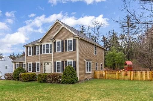 Exquisite Interior & Exterior Living Space for the Discerning Buyer! Lg eat-in kitchen: maple cabinets, granite counters, 4-burner propane stove, double-wall ovens, wine fridge, center island w/ breakfast bar. Front-back FR w/ wood-burning FP, built-in surround speakers, pre-wired for additional audio. Mostly oak flooring; French doors allow formal DR & den/LR to be closed off. Powder room & separate laundry room off back hall. Master suite connects w/ adjoining nursery/office/4th bedroom. 2 additional bedrooms & main bath on 2nd floor. Lower level just finished; no expense spared to create stylish multi-purpose area w/ high quality laminate flooring, built-in storage & contemporary bathroom. Expansive mahogany deck w/ built-in propane supply line for grill; pre-wired for outdoor sound. Private, fully fenced-in back yard with beautiful stone walls, gardens, & craftsman-built Nantucket-style shed. Gravel path leads into Whitetail Woods Conservation Land (36.8 acres). A special offering!