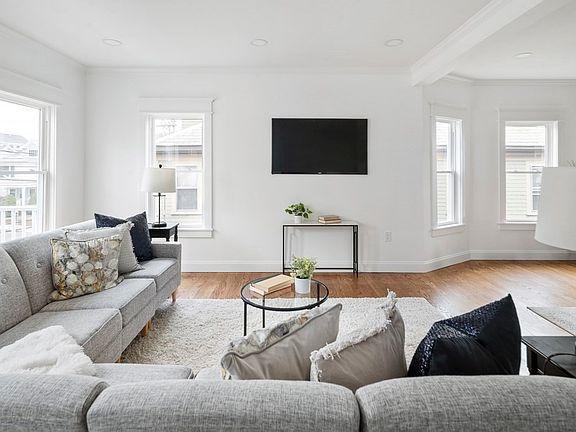 The residence at 8 Whitman; a Gut-Renovated, 2-Level, Luxury PH unit! Main level boasts an impressive open-concept w/ beautiful new walnut stain wood floors. The living room is ready to accommodate any size sectional; and has a cozy, WFH, nook, and leads out to one of two private outdoor spaces! There is a dedicated space for a dining room table all leading into your gorgeous kitchen complete with custom cabinets, quartz countertop, SS appliances, wine fridge, pantry and breakfast bar! Escape from the daily chaos onto your quiet, private back deck. The Primary en-suite is located on the main floor and has custom closets. The private, spa-like bath features a modern color palette, with double vanity and an enormous walk in shower w/ glass door! Convenient half bath. Head upstairs and you'll find a wonderful tiled laundry room w/ sink and stone counter space; Two bedrooms, a full bath, & multiple useful areas allowing for home office set up. Stone's throw to Tufts, Davis Sq & Redline