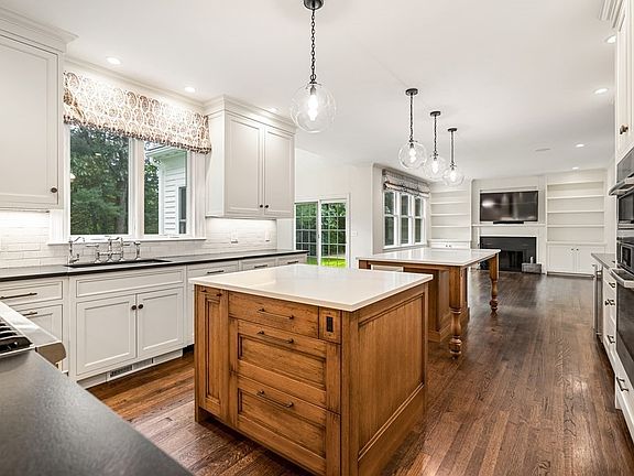 This stunning home is in the most tranquil setting, renovated in 2015 and spared no expense. The kitchen is a dream with no details spared. A 6 burner Thermador oven/stove range, 2nd Bosch wall oven, Thermador Fridge, wet bar w/ wine/beverage fridge, 2 unique islands built for various uses, intimate counter setting or huge buffet for entertaining. Kitchen is open concept to a family room, additional dine in or sitting area & a Butler's pantry. The 1st floor also hosts an office with fabulous built ins & a large luxurious living room with a gas fireplace that opens to a large dining room that overlooks the spectacular grounds. The primary bedroom on the 2nd level has hardwood throughout, tons of closet space with built ins & an exquisite bathroom with a soaking tub, dual vanities & very large shower w/ rainfall shower head. 2nd floor also has 4 more bedrooms and 2 more baths. The basement is finished & has a large bonus room, wine room & gym room. Brand new Marvin windows throughout