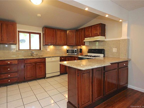 Wonderful starter home This sweet, sun-filled Cape offers gleaming hardwood floors and a welcoming open-concept. The combined Living Room, Dining Room, and Kitchen provide the perfect space for entertaining family and friends. Den/office is an added bonus for play or work. Updates include Thermopane energy-efficient windows, granite counters, and recessed lighting. Convenient first floor bedroom and full bath. Fully-fenced, level yard. Charming enclave makes the neighborhood a very special location. Close proximity to Stew Leonard's, plus public transportation, shopping, restaurants and more right around the corner Sold 'As Is'.