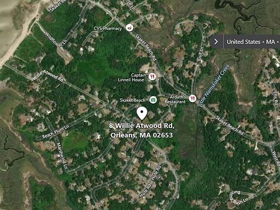 ***Rare Opportunity*** As the saying goes Location Location Location this holds true here. This beautiful private 1.22 acre lot is located just a short walk to the small bayside shores of Orleans, Skaket Beach is a large, popular beach. The soft sand stretches far towards to the ocean during low tide, revealing lots of tidal pools for children to explore. The calm, warm water makes it a great place for kids to swim. Close to Shopping, Markets, Restaurants, including Hog Island Beer Co. for lots of fun all summer long into the fall. This property is being sold as a building lot. structure on property as is.