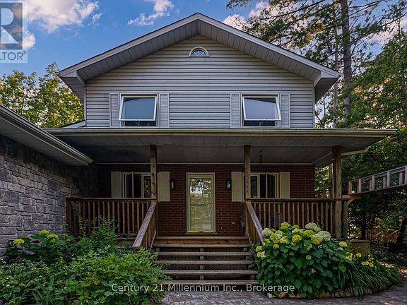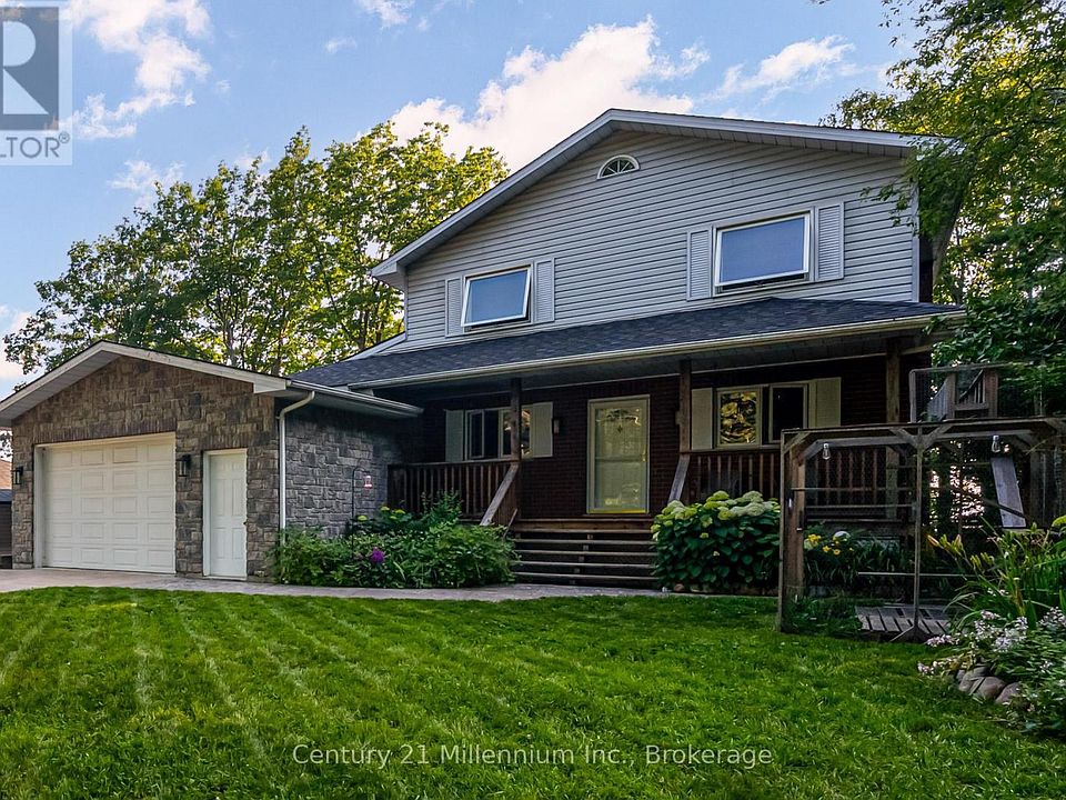Take a moment to think about the many wonderful memories you can make with your family as the next owner of this rare gem on the water in Woodland Beach. With over 3500 square feet of living space with direct access to the bay, there is room to spare for all season living.The main floor family room has stunning views of Georgian Bay, Collingwood, Blue Mountain and beyond. The west facing windows offer a front row seat to a different sunset every night of the year. The open concept kitchen with a space that boasts new countertops, expansive cupboards, and a wall-to-wall pantry, all flows effortlessly into the living room complete with a cozy gas fireplace. From the main floor primary suite you can indulge in the convenience of a walk-in closet and ensuite bathroom, designed for your relaxation and ease. The upper level supports three spacious bedrooms and a dedicated office space that opens onto a rooftop deck perfect for savoring morning coffees or evening cocktails as you overlook the serene waters of Georgian Bay. Downstairs the fully finished basement is an entertainer's dream. With two entertainment rooms, a bar, an additional bedroom, and a 3 piece bath, you'll be ready to host family and friends alike. Ideal for guests, extended family stays, teenagers or live in elderly parents. When you tour the grounds you will discover the real heart of the property. From the extensive perennial gardens to the patio perfect for evening meals, to the newer lower deck by the water's edge that you can experience the real peacefulness and beauty that this property commands. There have been many upgrades during this owners watch including: New septic bed (2023), New Kitchen counters, taps, and sink (2023) New Roof (2019) Central vacuum, central air, a hard wired generator, and a forced air gas furnace ensure your comfort. Custom catio for pet lovers! Close to Wasaga Beach, shops, restaurants and skiing at Blue. (id:41440)