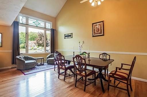 Beautifully maintained condo in very desirable Willow Pond complex has many stellar features, including pond view! Enter from cozy farmer's porch into the gracious foyer leading to cheerful living/dining area and well designed eat-in kitchen with tasteful decor. Open floor plan is enhanced by a soaring cathedral ceiling and graceful staircase that gradually rises to comfortable bedroom and bath level. It's a few easy steps up to an amazing loft space perfect for entertaining! The versatile lower level den with gas fireplace is nicely finished and boasts a full bath and separate laundry room. Walkout door leads to an inviting patio with privacy fencing and wonderful view of the landscaped pond featuring a fountain, manicured foliage, and conservation land. Storage is abundant, with spacious closets and two huge hidden storage areas. Ample guest parking, easy commute. Very well run by homeowners association, low HOA fee includes snow shoveling and landscaping right up to your door!