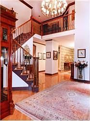Elegant Brick Colonial. Circular drive leads to 2 story Foyer w/HW floor, powder room, oak staircase. Formal LR w/soaring ceiling, double sided marble surround gas FP and large Palladian window.Formal DR w/triple divided light window and lights on dimmers for the right mood. Gourmet Kitchen w/Wolf stove, wall oven and warming drwr. & Sub-Zero fridge. Tumbled marble backsplash, granite ctrs, stainless apps. Breakfast Area w/sliders to deck. Inviting Family Room w/3 sets French doors to deck, stained glass, double sided Fireplace, Custom built-ins, entertainment center w/ wet bar. Luxury First Floor Master Suite w/2 WICS, Exercise Rm/Office. Master Bath w/dec. tilework, jetted soaking tub, granite double vanity, stall shower, sep. lavatory. BR w/Jack & Jill Bath. Add. BR w/en-suite Bath.