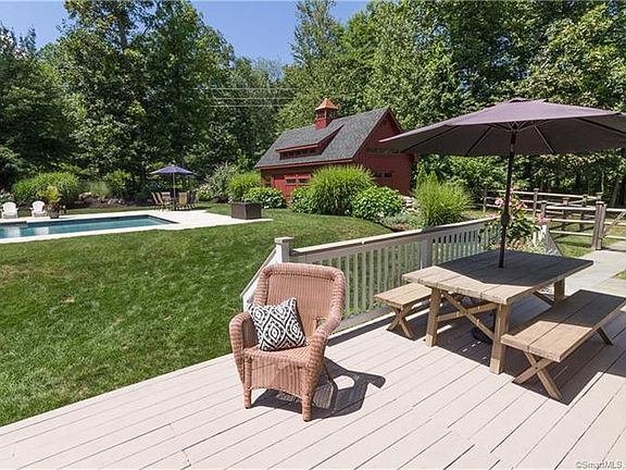 Add this to your list of Must-See homes! Welcome home to this wonderful colonial in one of Redding's most sought-after neighborhoods close to shopping, restaurants, and Metro North. Enjoy entertaining in the open kitchen-family room area, outside on the deck, or poolside. The master bedroom suite offers a walk-in closet and fully updated bath with dual sinks, separate shower, and hydro-tub. Three more bedrooms, laundry, and full bath accompany the MBR on the upper level. The main level offers a formal living room and dining room with hardwood floors and fireplace; office with built-ins; newly updated kitchen with granite countertops and stainless appliances flowing into the family room which has a fireplace and a wall of doors that open up to the back deck; mudroom; and a half bath. The lower level has media room, rec room, half bath, and a section that offers plenty of storage. The expansive property is professionally landscaped, a level back yard, sloping front yard, a heated salt water gunite pool, garden, and a barn that can be finished for a pool house with changing rooms, bar, and kitchen. The NY Times, in a recent article, has dubbed Redding as "the Vermont of Connecticut". Come enjoy the quiet life while remaining close to civilization. Pool is now open!