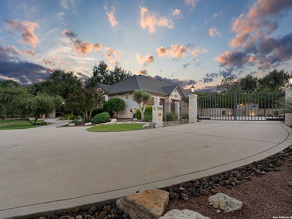 Discover exceptional single-level living on two coveted lots which totals 2.79 acres within the prestigious Cordillera Ranch Country Club. This extraordinary residence showcases 5,206 square feet of thoughtfully designed space, featuring five ensuite bedrooms, 5 bathrooms and two half bathrooms in a private gated enclave that epitomizes refined Hill Country lifestyle. In addition the layout of the home includes living room, dining room, an area off the kitchen that could serve as a "den" to relax and chat while others are cooking or it can be used as an eat in area for the kitchen, Game room, office, Laundry room, 3 car garage with additional storage and a stand alone garden house. The home's open floor plan creates a seamless flow throughout, enhanced by abundant natural light that illuminates every room. At the heart of the residence lies a gourmet kitchen centered around a spacious island, perfectly suited for culinary enthusiasts and casual dining alike. The dramatic living room fireplace serves as a stunning focal point, while exceptional storage solutions throughout the home ensure organized living without compromise. Each bedroom functions as a private retreat with ensuite bathroom accommodations. Two ensuite bedrooms connect to an additional living area or game room, creating perfect spaces for guests or children's recreational activities. The primary bedroom extends to a tranquil Zen-like patio, offering a serene escape for morning coffee or evening relaxation. The outdoor living experience proves equally impressive with a huge patio and dedicated barbecue area designed for entertaining family and friends. The private, fenced yard provides security and seclusion, while the serene location ensures peaceful living. This rare opportunity presents hard-to-find dual lots in the coveted Clubs area, just a short golf cart ride from world-class amenities and recreational facilities. The private gated community enhances security while maintaining the exclusive atmosphere that defines Cordillera Ranch living. Quality construction throughout reflects attention to detail and lasting value. The single-level design eliminates stairs, creating accessible living for all ages and designed to be ADA compliant while maintaining architectural elegance. Natural materials and finishes complement the surrounding Hill Country landscape, creating harmony between indoor and outdoor environments. A spacious private office with built ins and ceiling details provides the opportunity to work from home when needed. For the garden enthusiast a stand alone garden house and fenced raised beds are ready for vegetables, herbs and flowers to be enjoyed. The property's location within Boerne provides access to charming downtown attractions, excellent schools, and convenient highway access, while preserving the peaceful retreat atmosphere. This exceptional residence represents more than a home - it offers a lifestyle of luxury, privacy, and convenience . Experience the perfect blend of sophistication and comfort in this remarkable Cordillera Ranch estate.