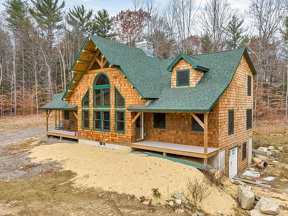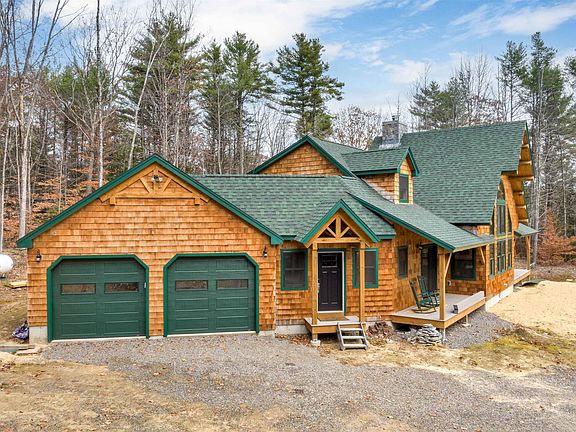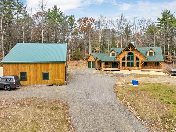 Construction is finishing at this stunning new Adirondack style home on three private acres. It includes a three bay, heated and cooled Carriage House with a bedroom suite. There are also beach rights, a 26 foot boat and a mooring on Lake Waukewan. The home was constructed with the utmost detail and attention to the finest quality. Perfectly sited to take advantage of solar efficiency, this home is easy to heat and cool. A Great Room with a soaring ceiling and beautiful Kentucky Bluestone fireplace has enormous windows. The kitchen with large walk-in pantry is finished with top of the line appliances. The Primary Bedroom has a spa-like bath. The second level has two bedrooms and a loft. The walkout lower level is ready to be finished to the taste of the new owner. An enormous three bay Carriage House is both heated and cooled. It includes a bedroom and bath. The beach and mooring are just a short walk.