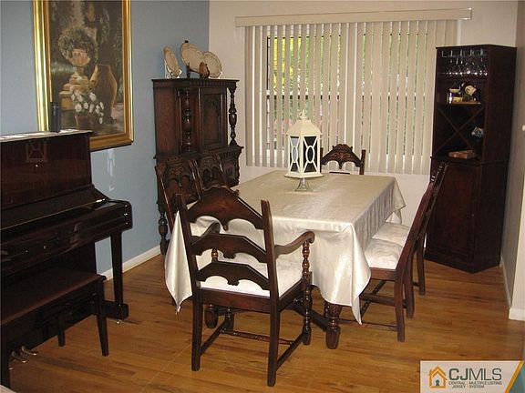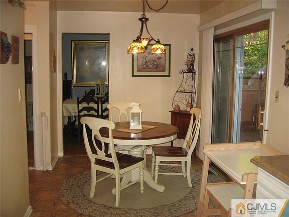 Dramatic vaulted ceiling in the two-story living room. Hardwood floors refinished. Formal dining room. Very spacious eat-in-kitchen with separate dinette, featuring beautiful beveled glass sliding door to deck. Private yard. Mirrored closet door. Attached garage with electric door opener, shelving and workbench. Finished basement with rec room open to other room, hi hat lights, plus laundry room. Upper level with oversized master bedroom, with hardwood floors, ceiling fan, and stained glass windows. Master bath with step-up whirlpool tub, stall shower, hi hat lights, and walk-in closet. Wood 6-panel doors. 2nd bedroom with hardwood floors, ceiling fan, and it's own full bathroom. AC and furnace replaced 8 yrs ago. Electric panel replaced 8 yrs ago. Roof was replaced 2 years ago. Driveway redone 3years ago. Pull down attic stairs. NYC commuter bus stops outside of development. Nearby South Amboy train station, and the soon-coming So Amboy Ferry. Pool is included in the maintenance fee. Gas fueled furnace. All newer window treatments. Beautiful home!!!!