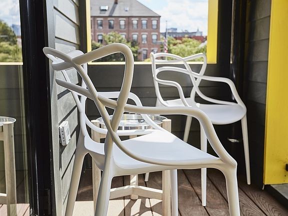 This spectacular new construction 1 bedroom features a spacious open concept floor plan fully equipped for the good life. Enjoy full-lite French doors that effortlessly extend your living area onto a 14-foot private deck. Whether you chef it up or order out, you'll be sure to appreciate the sizable kitchen boasting peninsula seating for 3-4, a Bosch 800-series appliance package with 36" French door refrigerator, 24" dishwasher, 30" 5-burner gas range, Italian cabinetry with integrated LED lighting, chevron porcelain backsplash and Misterio Pental Quartz countertops. Thoughtful design incorporates FOUR closets into this efficient home along with 27"stacked washer and vented dryer to easily accommodate your queen or king-sized bedding. Off street parking, custom closet systems, Central HVAC, Ecobee SmartThermostat, video intercom, keyless entry combined with superior finishes & quality craftsmanship from East Boston's renowned development team will truly elevate your lifestyle!