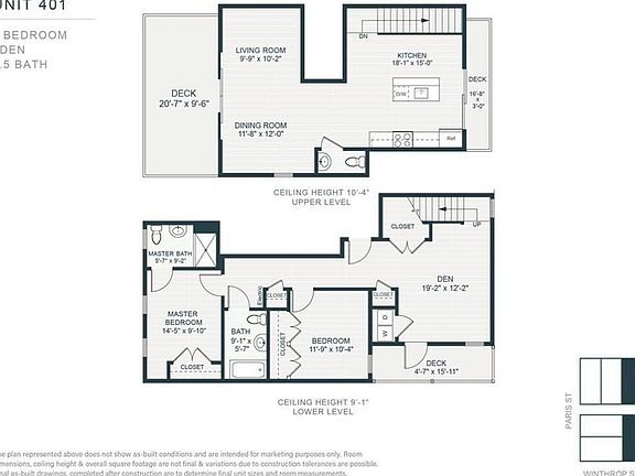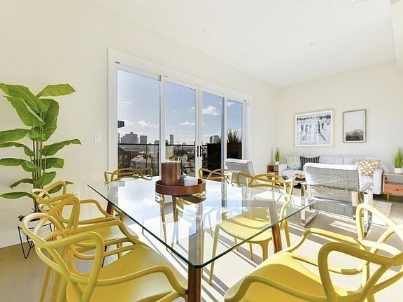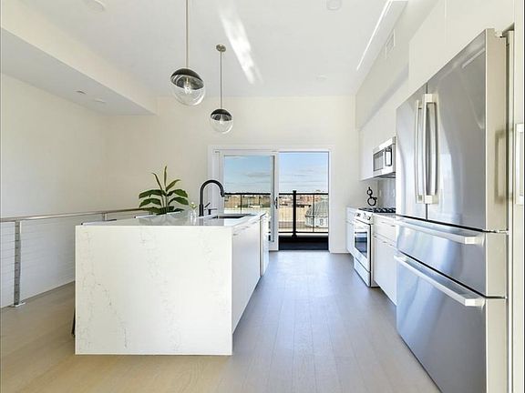 The Penthouse Collection at Block 8 includes this exceptional home offering 2 bedrooms plus a corner den, 2.5 baths, 3 private decks and an abundance of natural sunlight on two levels. The upper level features striking 10'4" ceilings, an open concept floor plan with 3 exposures, a half bath and two 8' sliders leading to private outdoor space. Dine and unwind with a skyline backdrop from your living room that opens to a 200 SF southern deck. Gather in a contemporary kitchen boasting Aster Atelier cabinetry, Bosch 800 Series appliances, Statuario Pental Quartz island and northern deck with a truly unique backdrop of the iconic bank dome! The lower level opens to a large den with 15' eastern deck. Both bedrooms and 2 full baths occupy the southeast corner of this home for ample privacy. Fitted with Electrolux laundry, Central HVAC, Ecobee thermostats, video intercom & keyless entry. Live steps to the Blue Line (Maverick Station). Current photos reflect stock furniture, which have since been enhanced/modified. Apartment can come furnished if preferred. Virtual and/or in-person tours available starting on June 27. Move in available starting on July 23. Owners pays for water. Renter responsible for electricity and gas. First and last month rent + security deposit due at signing. No smoking allowed. Small pets negotiable. Street parking.