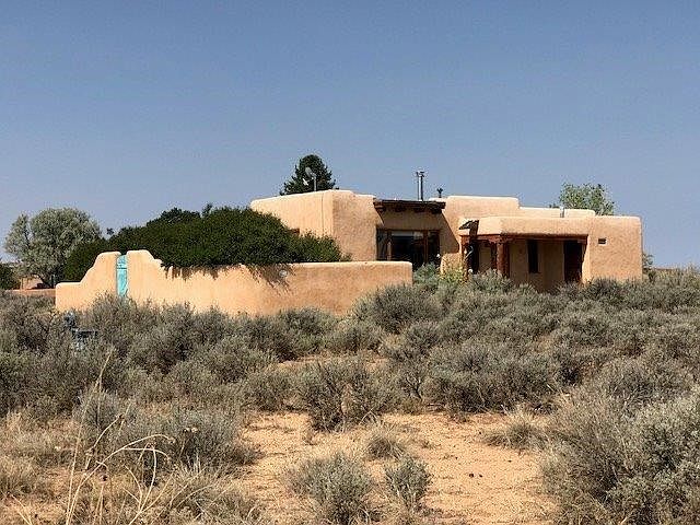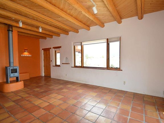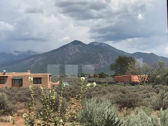 EASY ON THE MIND AND BUDGET. This welcoming 1,200 sq. ft. 2BR/1BA Pueblo style home on .8 ac. in a great location just off popular Blueberry Hill is spacious enough for home-sweet-home or cool enough for a sweet get-a-way or vacation rental. A large picture window in the living room frames Taos Mountain views and a wall of windows brings in Southern views and passive solar gain. Saltillo tile throughout, vigas, and Mexican tile lend true Southwest feel. A large walled patio is yet another space to enjoy the mountain and mesa views and the quiet of high desert living. You'll appreciate the convenient location which is about 12 min. to town for all Taos. 40 min to Taos Ski Valley, 20 min. to golf, 20 min. to USFS, and 10 min. to Rio Grande Nat'l Monument. Let this nice find be your home base for everything Taos has to offer.